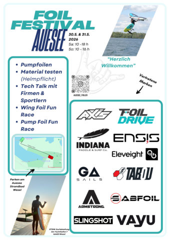 Der Auesee, durch Auskiesung und Renaturierung entstanden, ist mit einer Fläche von 165 ha und einer Tiefe von ca. 17,5m einer der saubersten Seen Nordrhein-Westfalens. Seit vielen Jahren ist dieses Areal ein beliebtes Wassersportrevier für unterschiedliche Wassersportarten: Tauchen, Baden, Segeln, Rudern, Paddeln und natürlich Windsurfen und Stand-Up-Paddling. Die Zufahrt zum Nordstrand erfolgt über 2 Schranken, für die Vereinsmitglieder Schlüssel erhalten. Eine große Wiese zum Aufbauen von Material, sowie Container mit Vereinsmaterial befinden sich direkt am Surfeinstieg. Direkt an einer Rheinkurve gelegen, ergibt sich besonders aus Südwest- und Nordostrichtung ein stabiler Windeinfall sideshore. Nördliche Windrichtungen fallen auflandig ein und bieten einen besonders langen Streckenschlag. Durch die exponierte Lage des Nordstrandes auf einer Halbinsel ergibt sich aber auch die Möglichkeit, südliche Windrichtungen komfortabel zu surfen obwohl sie eigentlich ablandig einfallen. Je nach Windrichtung besteht die Möglichkeit, sich zwischen Windeinfall für das Windsurfen und Windabdeckung für das Stand-Up-Paddling zu entscheiden. Diese Vielseitigkeit macht den Auesee für Windsurfer und Stand-Up-Paddler als Anfänger, Fortgeschrittene und Profis zu einem ganz besonderen Wassersportrevier in NRW.